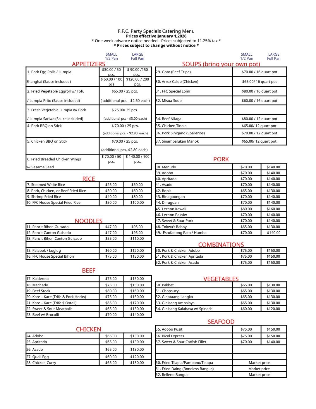 one week advance notice needed - same day orders not accepted)