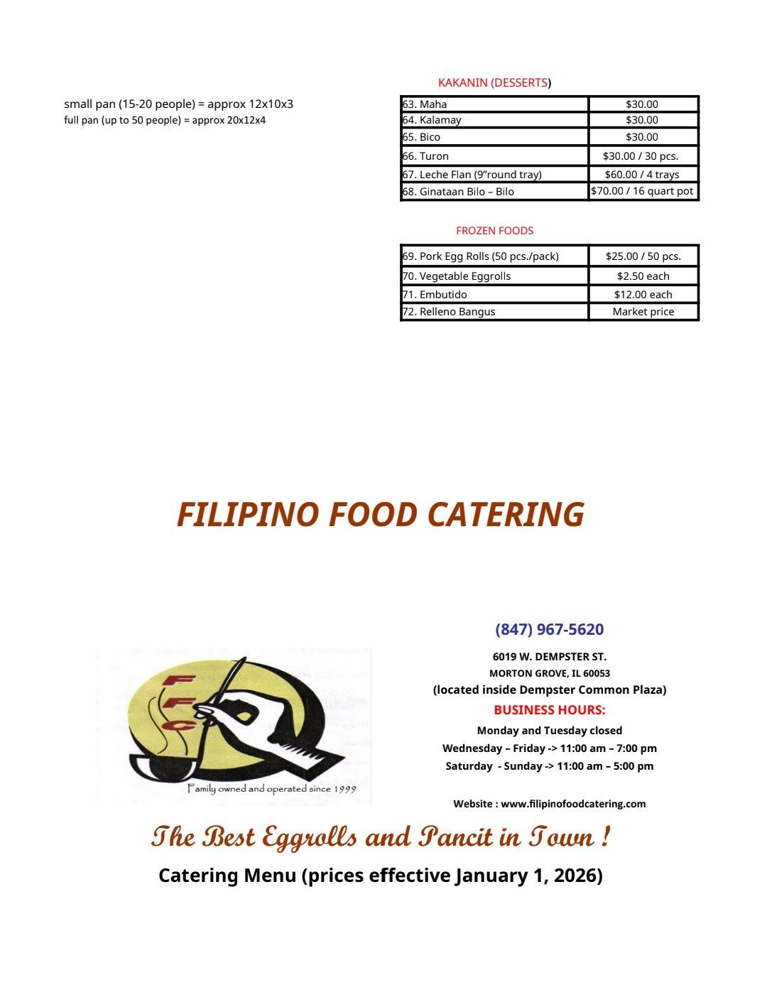 From mouthwatering pancit to charcoal-roasted whole pig, Filipino Food Catering provides an assortment of delectable dishes that are loaded with culture and tradition from the Philippines. We also cater a wide variety of lip-smacking kakanin or desserts. Call us today to enjoy our Filipino delicacies. All our staff members speak Filipino.